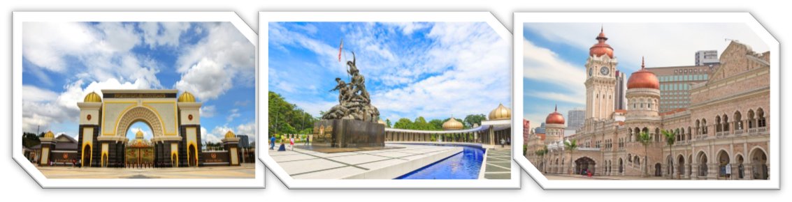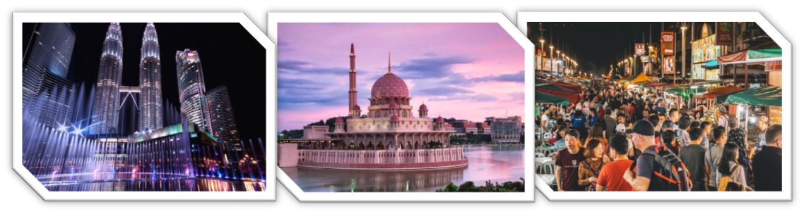 - Khu Putrajaya – Trung Tâm Hành Chánh mới (NEW CITY) của MALAYSIA với những địa danh du lịch nổi tiếng như: Nhà thờ Hồi giáo Putra, Văn phòng Thủ tướng, Trung tâm hội nghị. Putrajaya còn được xem là Thành phố thông minh đẳng cấp thế giới và có môi trường làm việc vô cùng hiện đại: không ô nhiễm, không tệ nạn, không có lạc hậu và dân cư thì được tinh lọc.